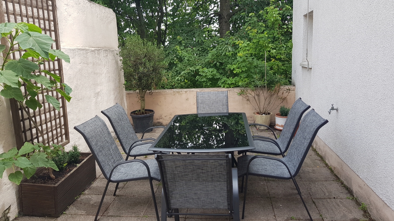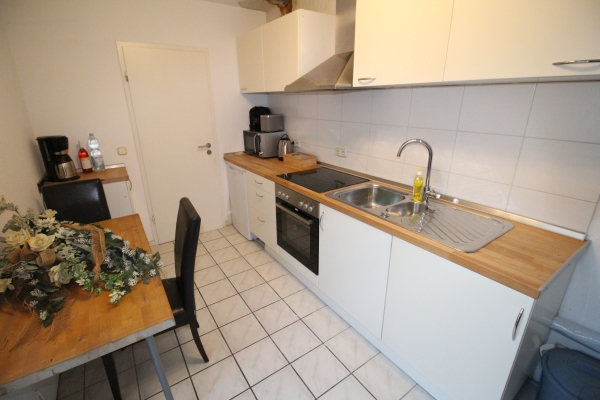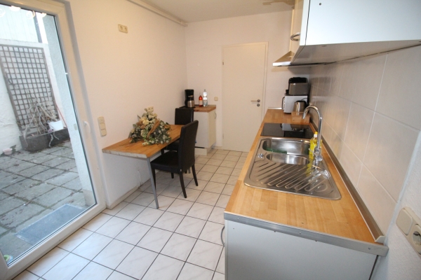 Die Küche verfügt vom Wasserkocher, über die Mikrowelle, Herd mit Backofen bis hin zur Tchibo-Kapsel-Kaffeemaschine, Filterkaffeemaschine, Toaster, Gläser, Geschirr, Besteck, Töpfe, Pfanne, etc. Von der Küche gelangen Sie auf die schöne uneinsehbare Terrasse.